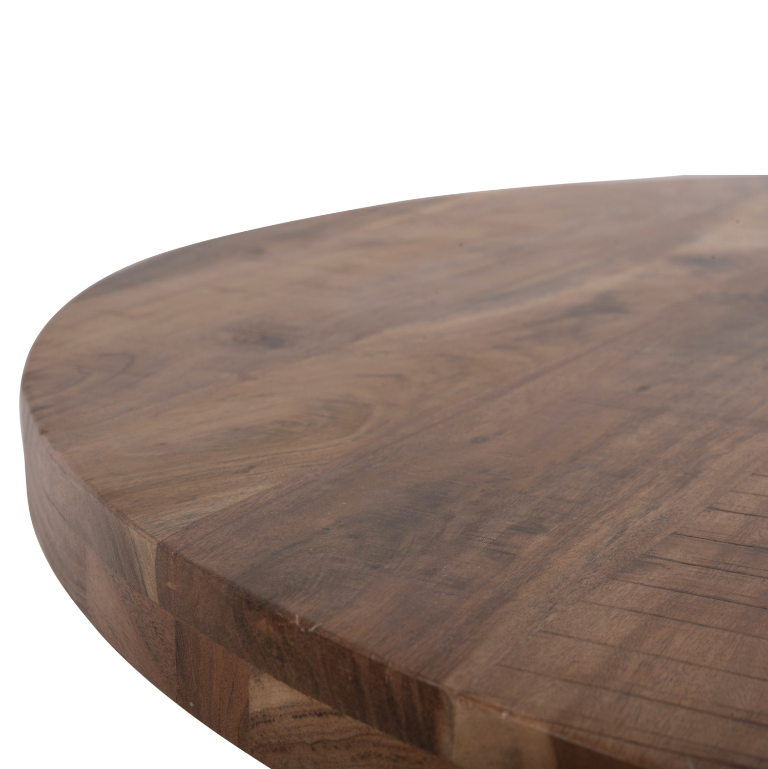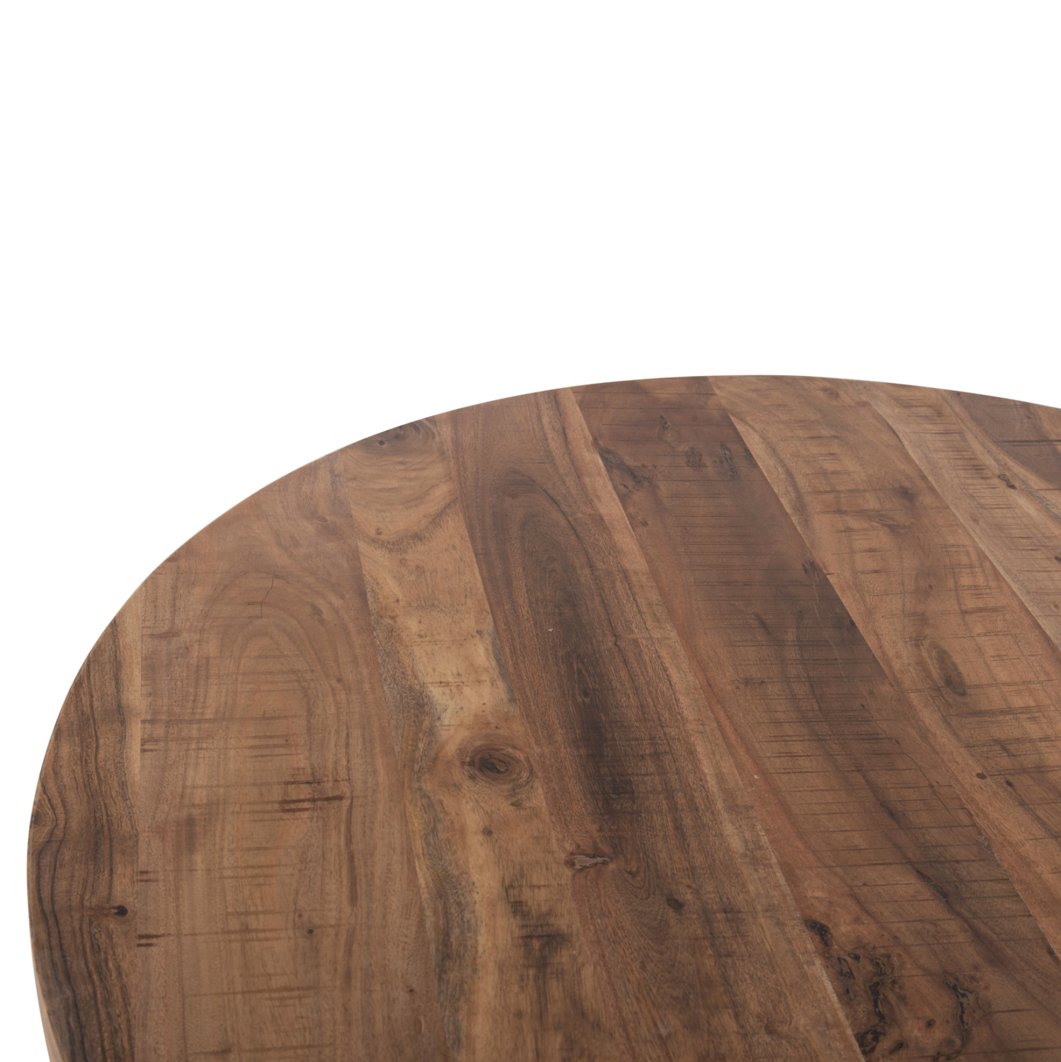 Ανακαλύψτε το μοναδικό χειροποίητο τραπέζι MONTANA SUPERIOR με επιφάνεια από φυσικό μασίφ ξύλο ΑΚΑΚΙΑΣ σε ΦΥΣΙΚΟ χρώμα. To σχήμα είναι στρογγυλό και στηρίζεται σε μαύρα μεταλλικά διπλοχιαστί πόδια. Το μοντέρνο design συναντά την φύση και δίνει μια διαχρονική και ζεστή αίσθηση στον χώρο σας.