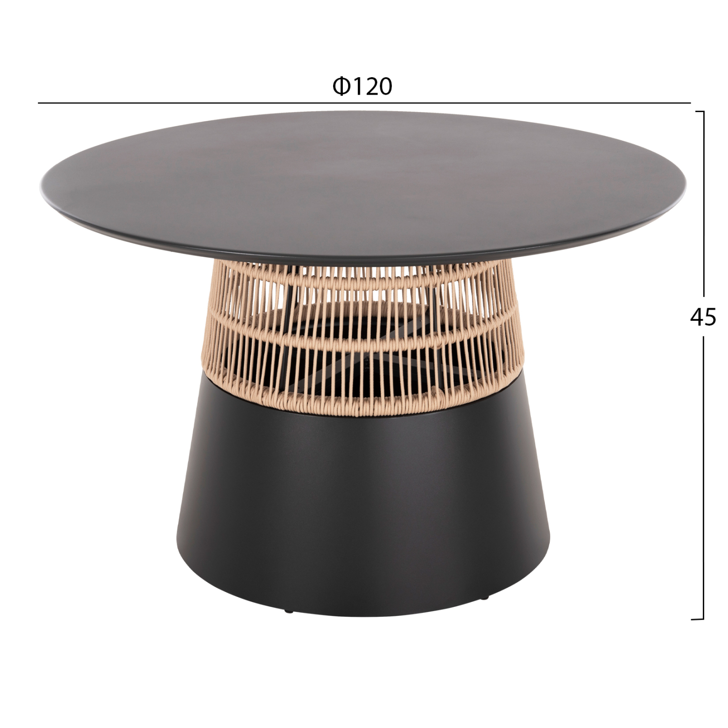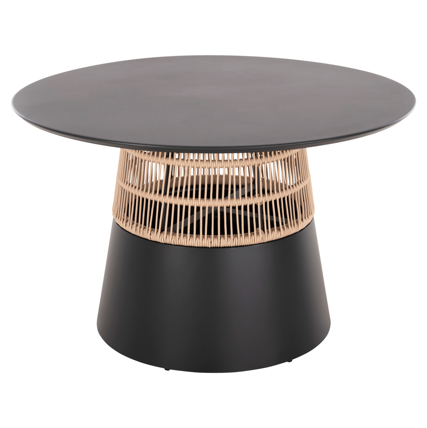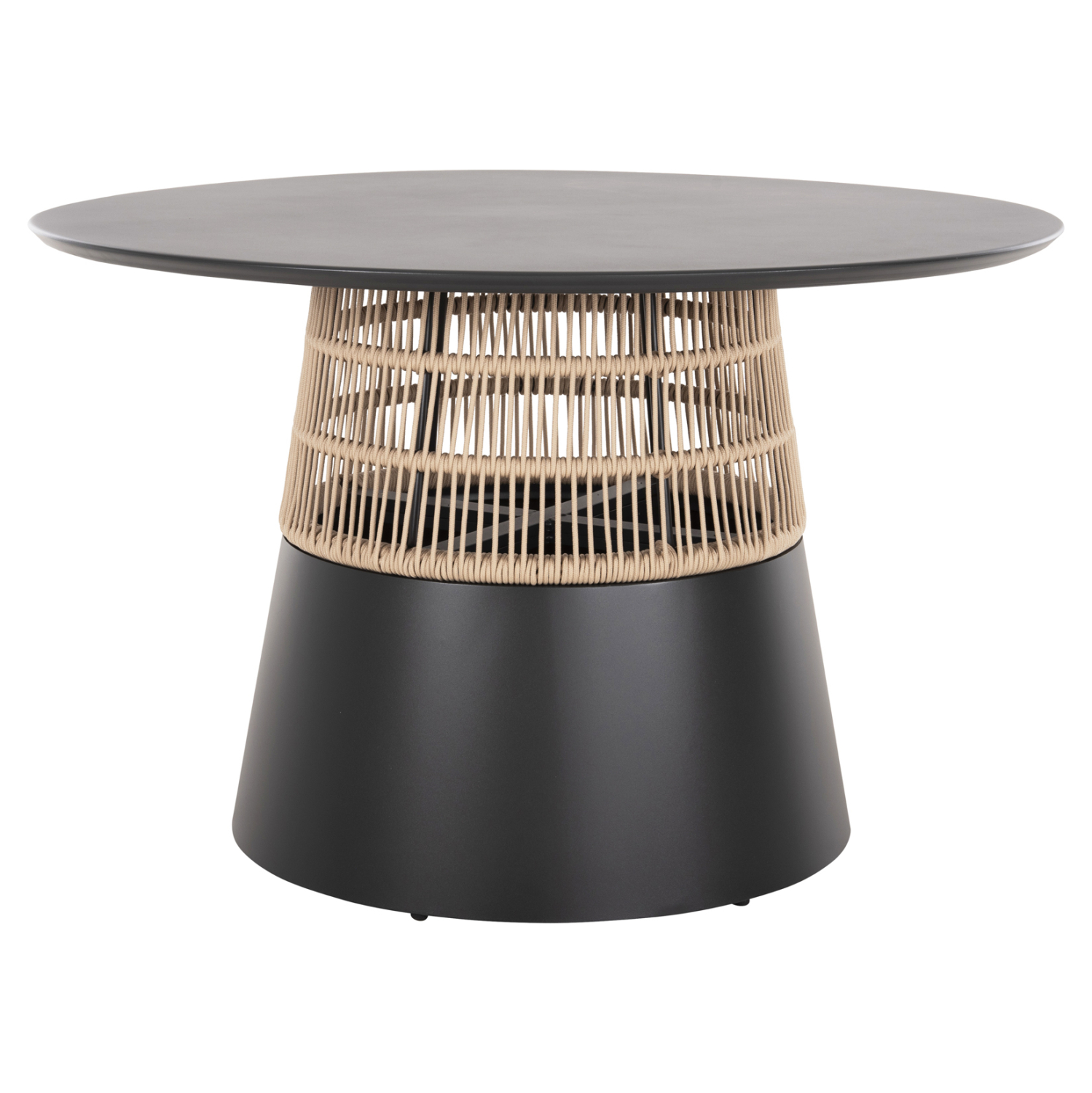 Το SAEID είναι ένα στρογγυλό (στυλ ροτόντα) τραπέζι αλουμινίου σε ικανοποιητικές διαστάσεις σε ΑΝΘΡΑΚΙ χρώμα. Το τραπέζι στηρίζεται σε μια κωνική και κυλινδρική κατασκευή από ΑΝΘΡΑΚΙ αλουμίνιο και σχοινί σε ΜΠΕΖ χρώμα. Αυτό το τραπέζι θα αναβαθμίσει αισθητικά κάθε εξωτερικό επαγγελματικό χώρο, είτε ακόμα και στο σπίτι, ενώ μπορεί να ταιριάξει με πολλά διαφορετικά στυλ και χρώματα, όπως και με διαφορετικά στυλ καρέκλας.