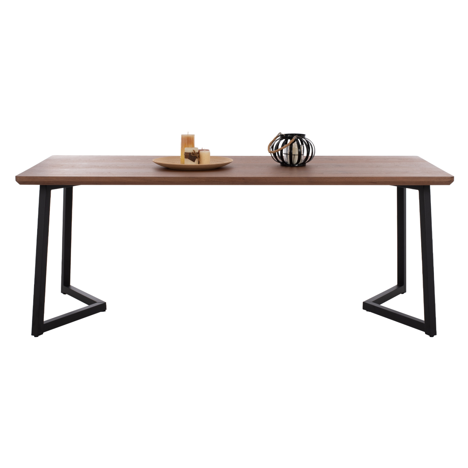 Το JAY είναι ένα μεγάλο ορθογώνιο τραπέζι για την τραπεζαρία, με επιφάνεια από MDF με καπλαμά καρυδιάς σε χρώμα σκούρο ΚΑΡΥΔΙ και σε στυλ ρουστίκ. Η επιφάνεια αυτή είναι «φαλτσοκομμένη»(δεν είναι δηλαδή τετραγωνισμένη) και στηρίζεται σε έναν μαύρο μεταλλικό σκελετόπλαίσιο με πόδια σε μοντέρνα γεωμετρία. Πρόκειται για ένα επιβλητικό τραπέζι σε μεγάλη διάσταση και με όμορφη διχρωμία, με αποτέλεσμα να μπορεί να ταιριάξει αισθητικά σχεδόν σε κάθε ανάλογο χώρο.
