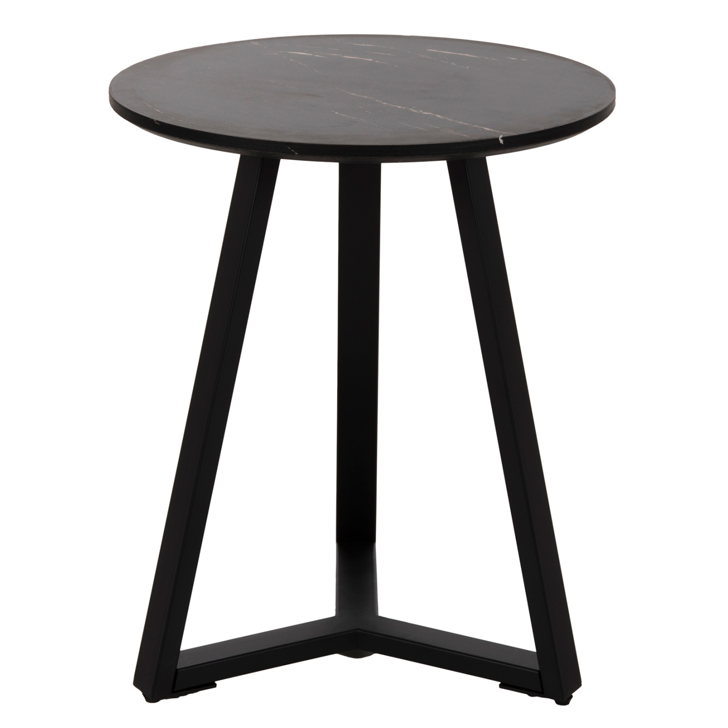 Το βοηθητικό τραπεζάκι LH10.9587.01 είναι η καινούργια προσθήκη στην γκάμα μας και θα σας ενθουσιάσει με το στυλ και την πρακτικότητά του. Πρόκειται για ένα στρογγυλό τραπεζάκι με ιδιαίτερο χαρακτηριστικό ότι η επιφάνεια στηρίζεται σε μια μοντέρνα τρίποδη βάση. Η βάση είναι μεταλλική σε ΜΑΥΡΟ χρώμα, ενώ η επιφάνεια είναι κατασκευασμένη από MDF σε χρώμα ΜΑΥΡΟΥ ΜΑΡΜΑΡΟΥ.