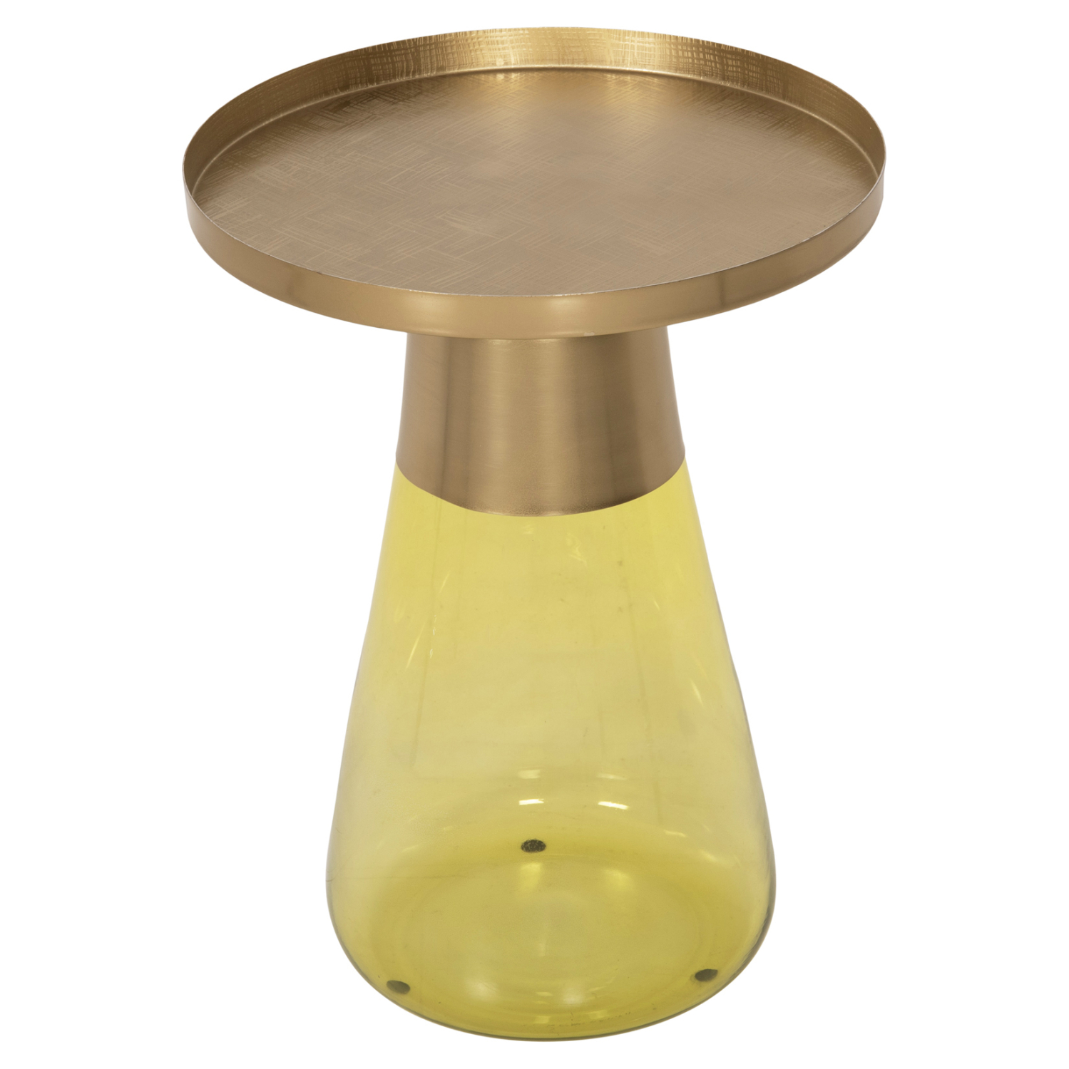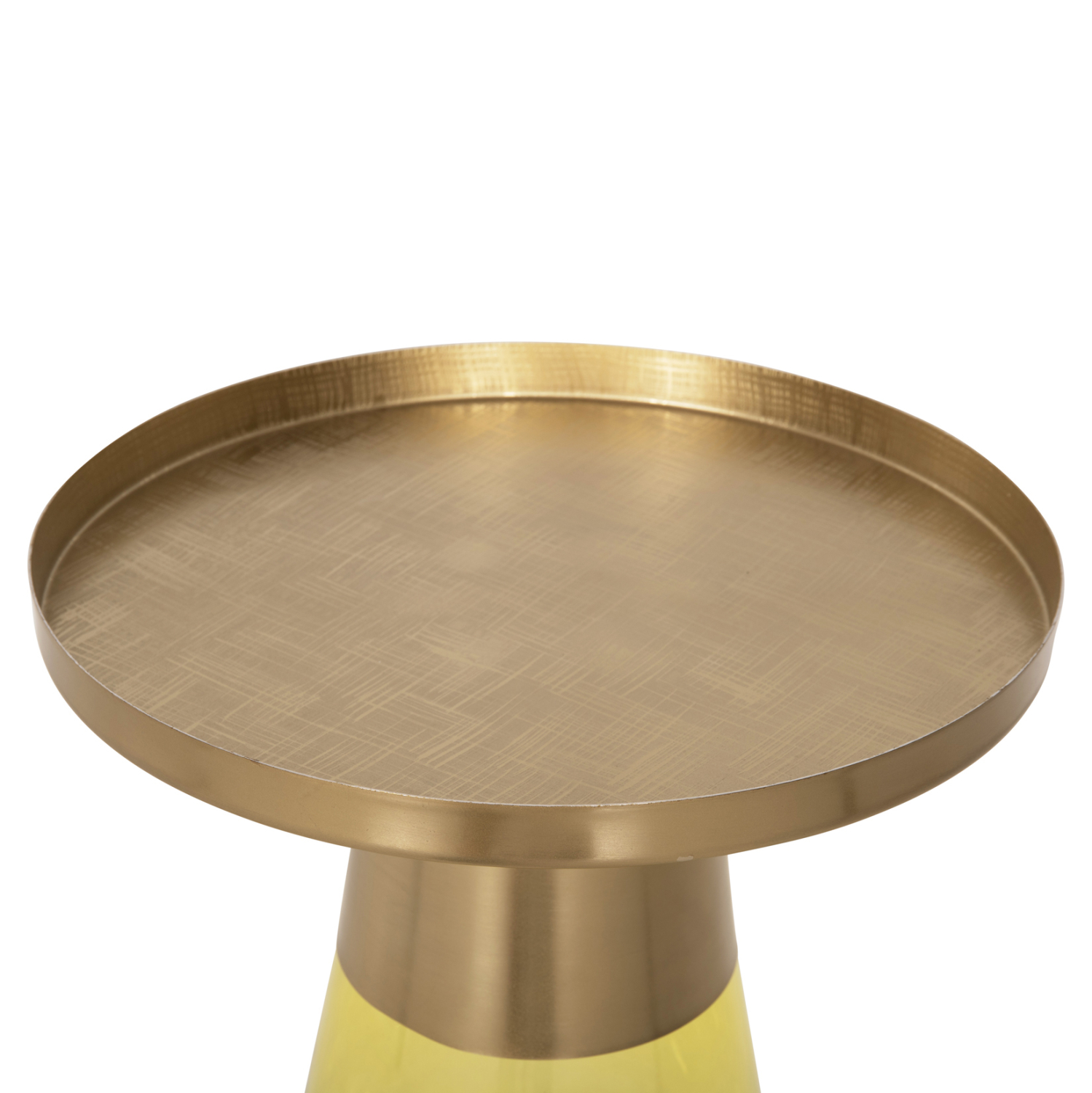 Το εξαιρετικό βοηθητικό τραπεζάκι VALERY έχει γυάλινη κωνική βάση σε διαφανές ΑΝΟΙΧΤΟ ΠΡΑΣΙΝΟ χρώμα και μεταλλικό «λαιμό» και top σε γυαλιστερό ΧΡΥΣΟ χρώμα. Το τραπεζάκι δίνει μια αίσθηση πολυτέλειας και είναι ιδανικό τόσο για το σπίτι, όσο και για επαγγελματικούς χώρους.