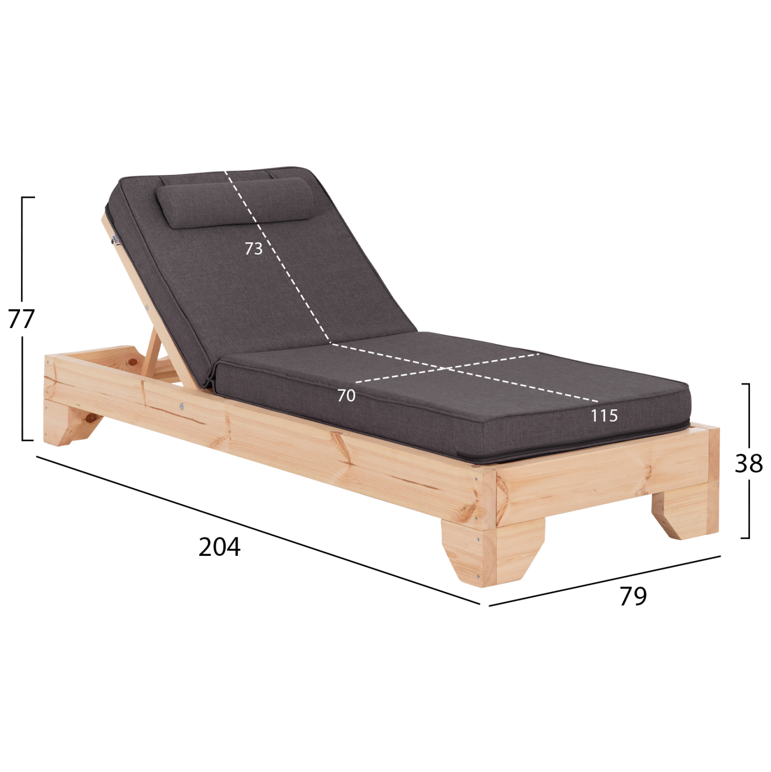-Το μαξιλάρι που συνοδεύει την ξαπλώστρα είναι από αφρό μέτριας σκληρότητας ενώ το κάλυμμα είναι από ύφασμα OLEFIN σε ΓΚΡΙ χρώμα. Δένεται στην ξαπλώστρα με κορδόνια.